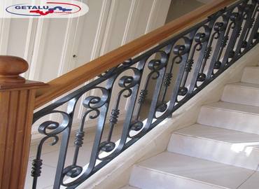 GETALU est spécialisée dans les fermetures du bâtiment(fenêtres, portes fenêtres coulissantes, Rampe d'escalier en fer forgé ref: 12, Rampe d'escalier hélicoïdal, Rampe d'escalier en fer forgée ref:09, Rampe d'escalier ref:10, Thermolaquage des profiles aluminium, Porte en aluminium baguettée,